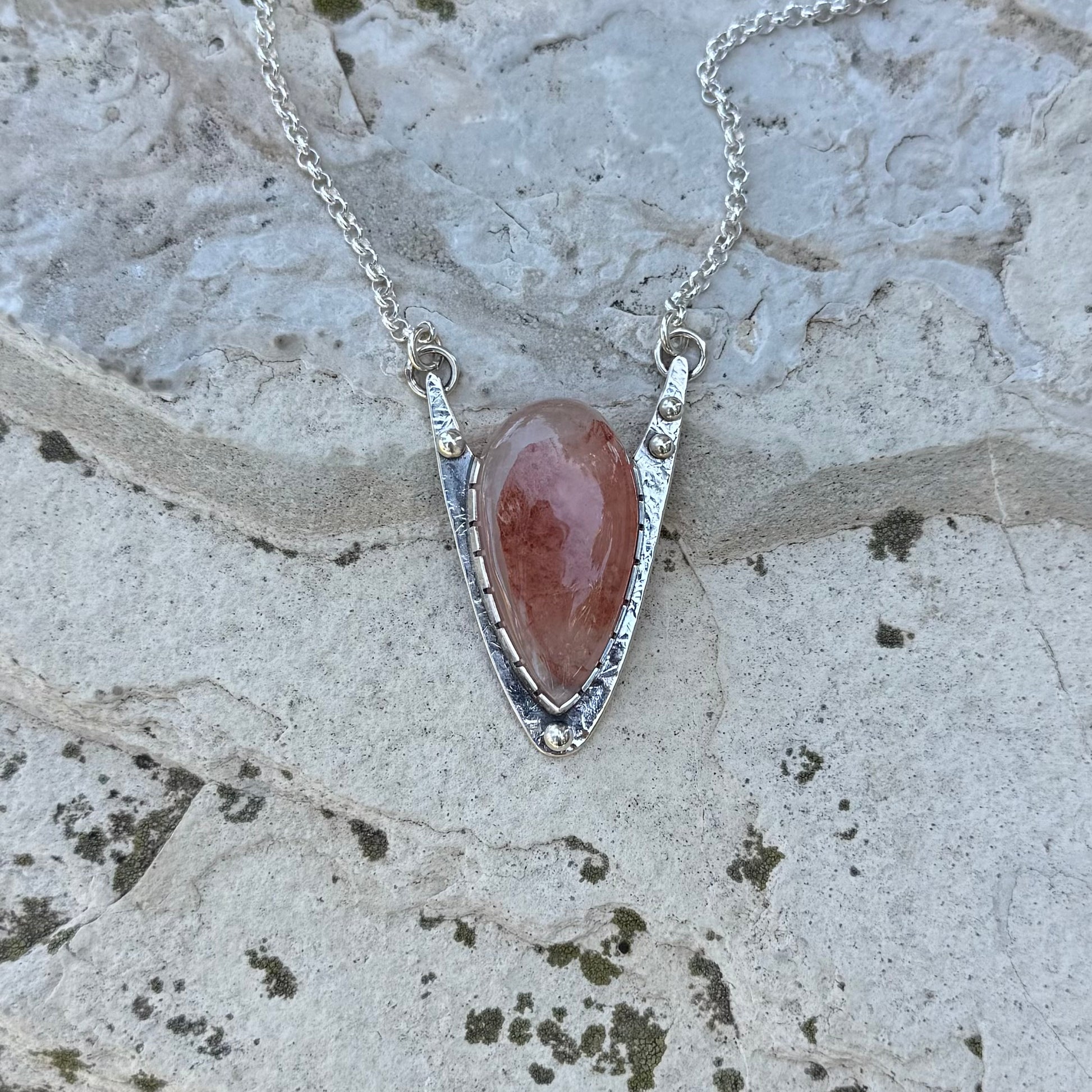 This piece is even more beautiful in person. The fire opal stone is stunning and the style of the piece is beautiful, elegant but in a boho chic way. The natural beauty of the stone And the simple leaf design complement each other well. I feel the magic I'm this item. Also Casey made it very easy to communicate when I had questions and easily arrange the delivery.