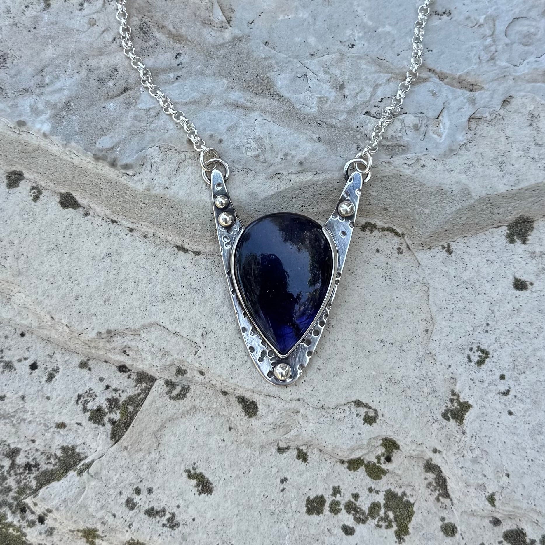 Iolite Sunstone | Silver Delta Necklace