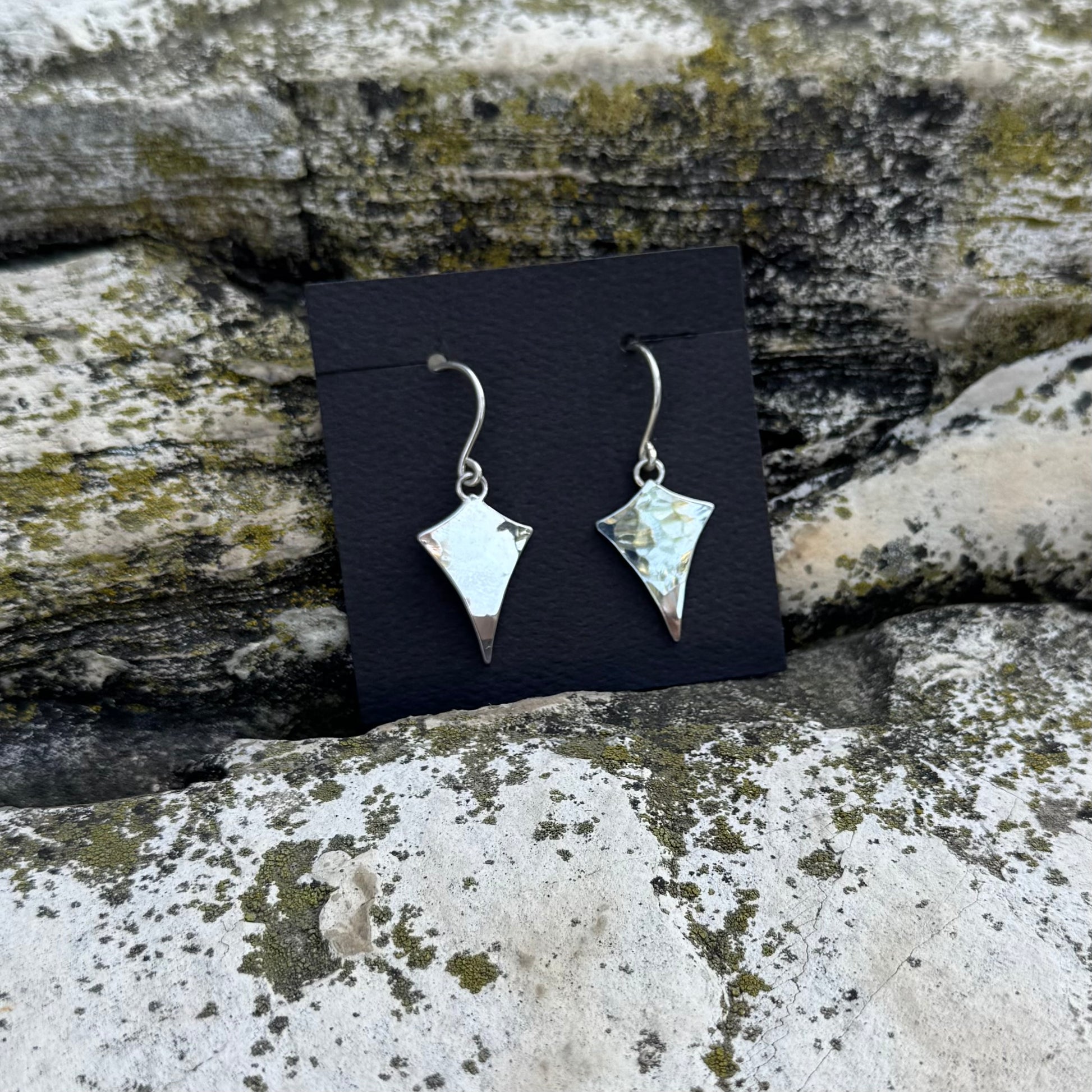 Celestial adornments that capture the brilliance of one of the night’s brightest stars. These abstract star-shaped earrings are crafted from sterling silver and textured with a hammered look, adding an elegant touch to their design. Each pair is meticulously hand-drawn and crafted with precision and care. Illuminate your look with the timeless charm of our Polaris Star Earrings.